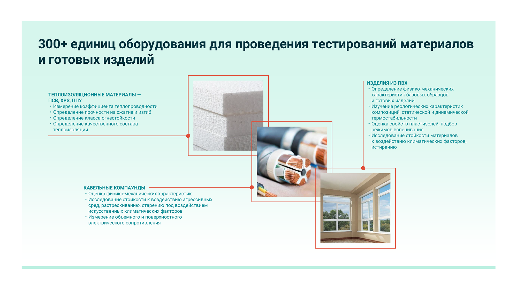 В распоряжении «ПолиЛаба» есть более 300 единиц оборудования для тестирования полимерных материалов и готовых изделий. «ПолиЛаб» тестирует прототипы продукции партнеров СИБУРа в целях повышения их конкурентоспособности. Также на базе «ПолиЛаба» проводятся технические консультации и обучение партнеров по 134 тематическим программам, совместный поиск импортозамещающих решений и сертификационные испытания. К каждому виду изделий – свой подход, в зависимости от сферы применения и дальнейших перспектив использования.