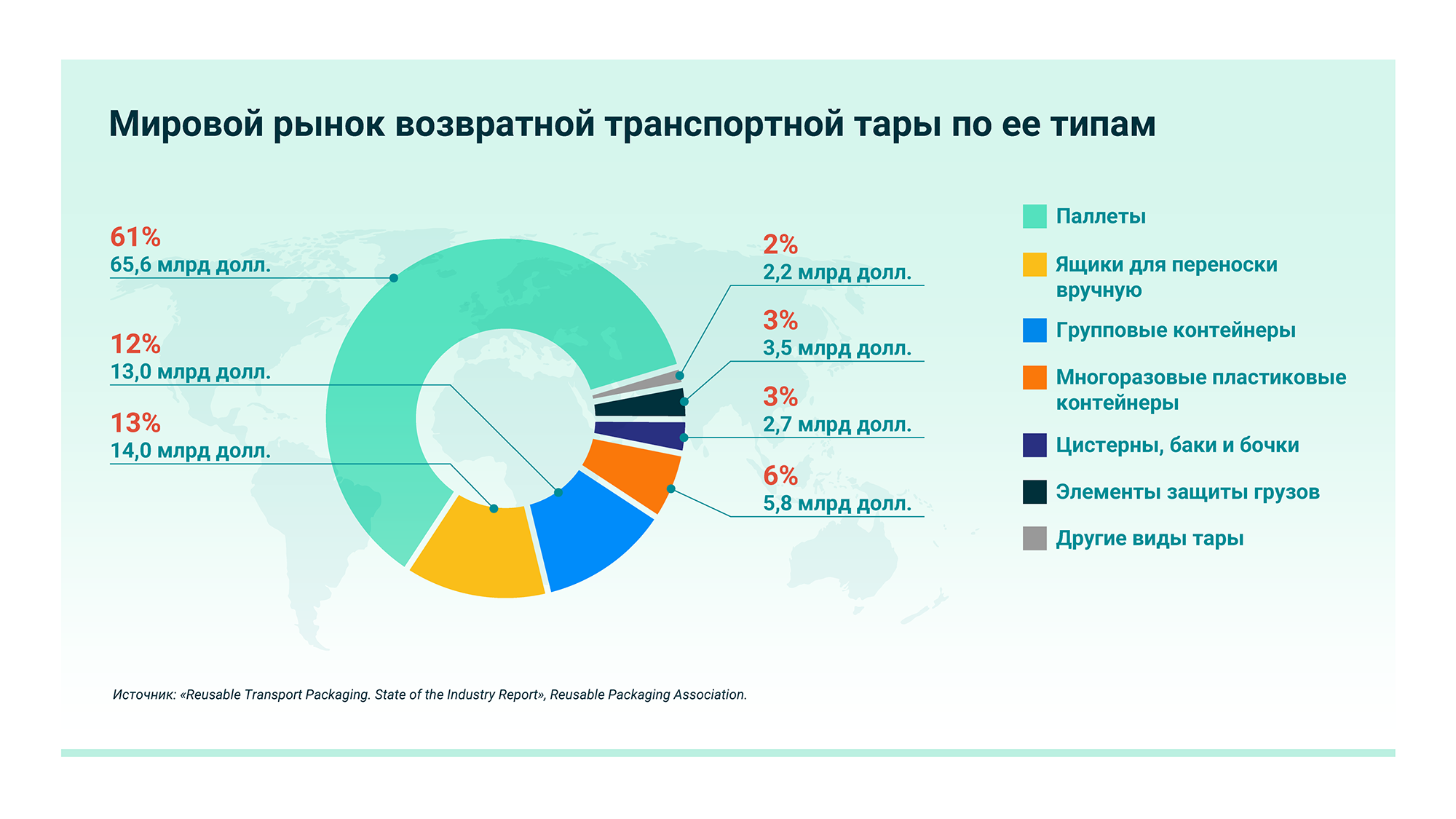 По данным Reusable Packaging Association, в 2023 году объем мирового рынка многооборотной тары составил 9,7% от общего рынка упаковки, или 107 млрд долларов. Основными драйверами роста и развития сегмента многооборотной тары являются четыре объективных фактора: