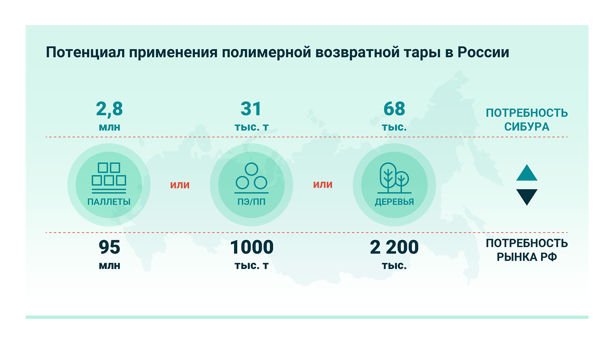 Это подтверждают исследования, проведенные специалистами дивизиона «Жесткая упаковка» СИБУРа на основе данных своей компании и обобщенного российского опыта потребления транспортных паллет. В настоящее время СИБУР переводит свои логистические схемы на пластиковые упаковочные решения. В России оборот деревянных паллет достигает 95 млн штук в год, что означает ежегодную вырубку 2,2 млн деревьев – внушительного лесного массива (из одного дерева – примерно 40 паллет). Этих трудновосполнимых природных потерь можно избежать при замене дерева на более экологичный пластик. При современном уровне развития производства полимеров в России все 95 млн деревянных паллет можно за несколько лет заменить более эффективными пластиковыми.