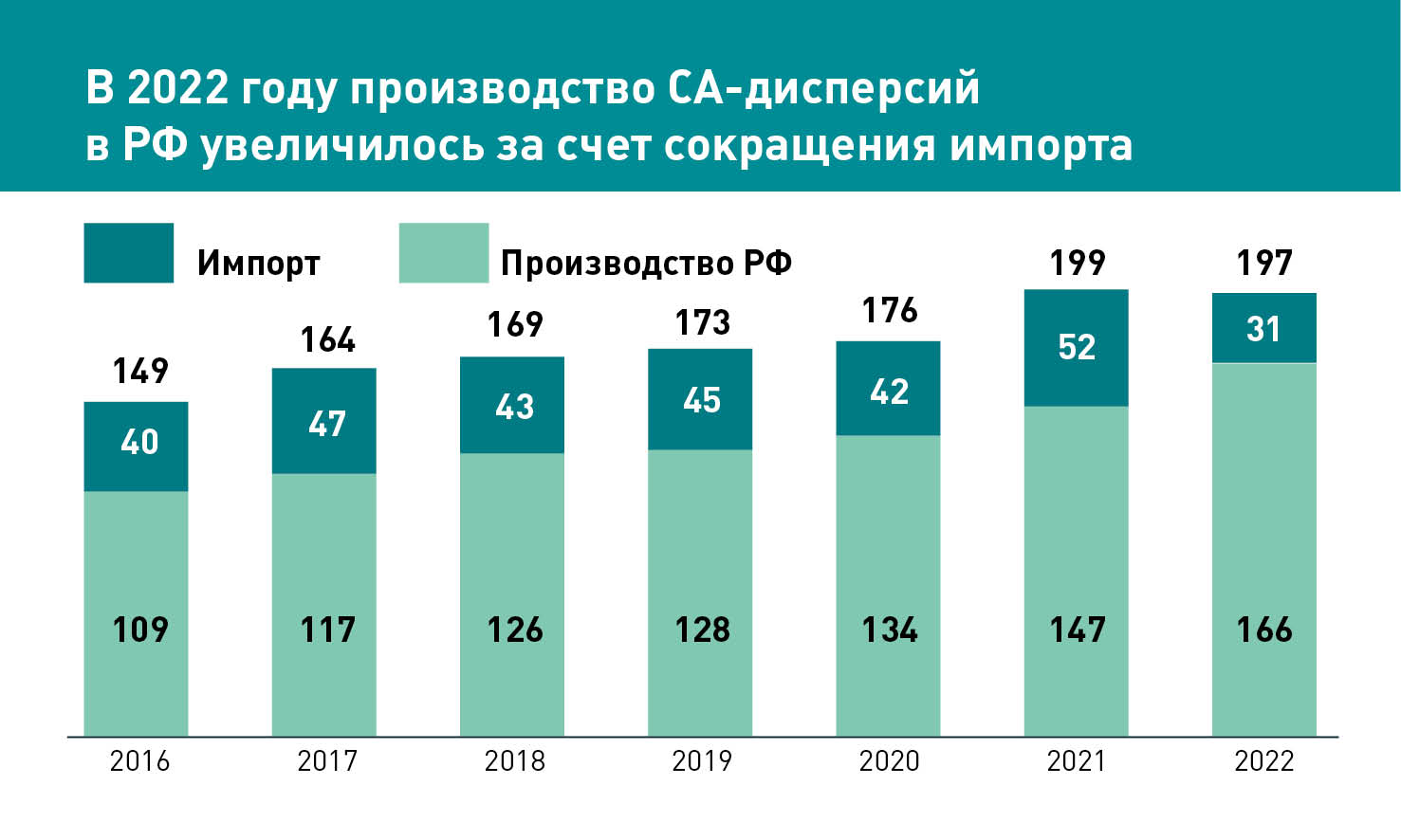 В сегменте для ЛКМ динамика в 2022-м была разнонаправленной: органорастворимые краски упали более значительно, чем водоэмульсионные. Это положительно повлияло на объемы потребления стирол-акриловых дисперсий (СА), которые используются в производстве красок, клеев, мастик, пропитки нетканых материалов, а это, в свою очередь, позволило локальным производителям нарастить производство. Обеспечить российские компании сырьем получилось за счет увеличения поставок бутилакрилата и стирола (сырье для производства СА), отечественные производители сумели быстро нарастить их поставки.