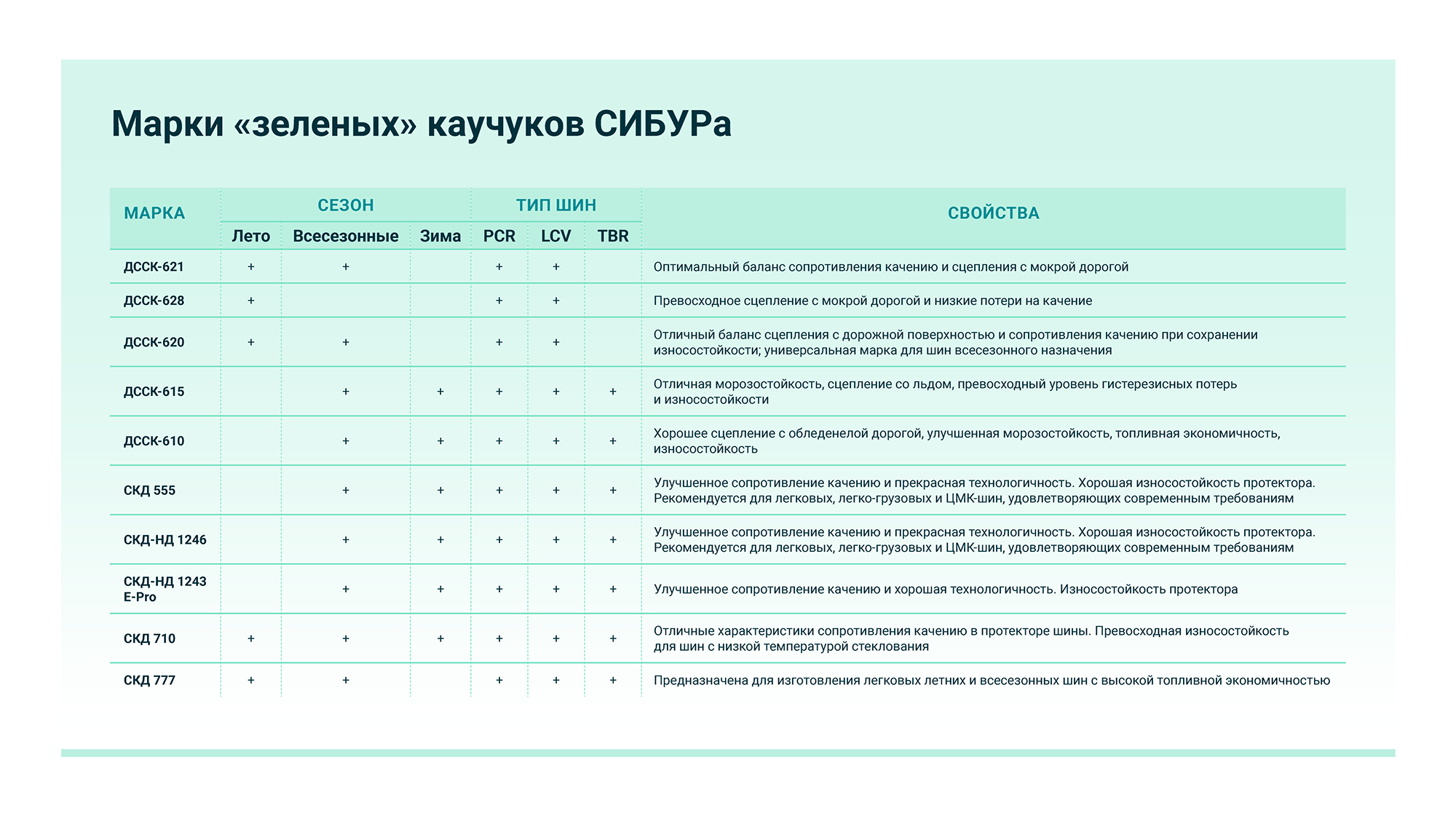 Марки «зеленых» каучуков СИБУРа
