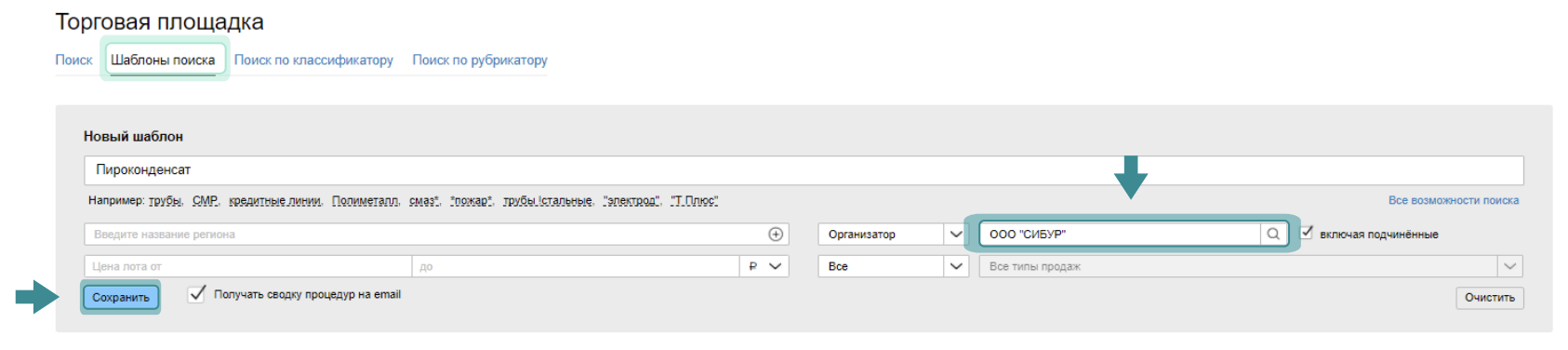 Введите все необходимые параметры поиска, установите галочку «Получать сводку процедур на e-mail» и нажмите «Сохранить». Теперь вы будете получать оповещения о новых процедурах на e-mail.