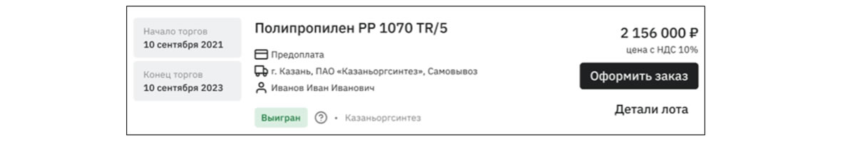Когда торги завершены и организатор торговой процедуры опубликовал результаты, информация отразится как на площадке B2B-Center, так и в личном кабинете интернет-магазина СИБУР. Дополнительно победитель получит уведомление на указанный адрес электронной почты.