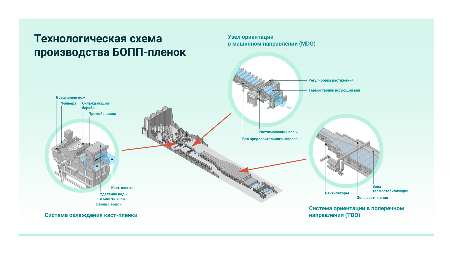 Технологическая схема производства БОПП-пленок и ее основные узлы