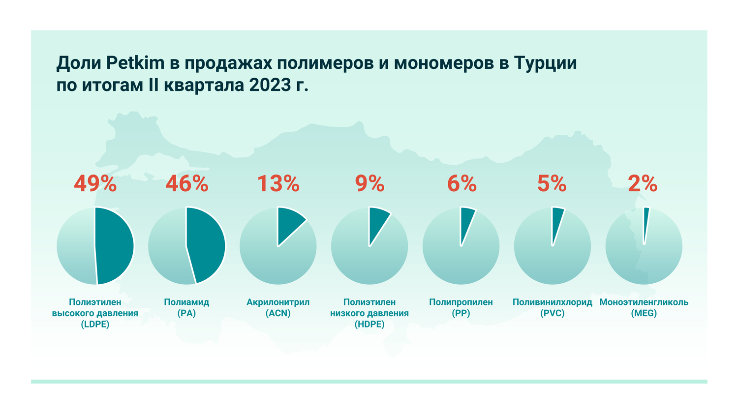 Petkim – единственная интегрированная нефтехимическая компания Турции, которая выпускает широкий спектр продукции для дальнейших переделов. Заводы Petkim производят, в частности, этилен, полимеры, ароматики и волокна. Поставки на внутренний рынок от Petkim в I полугодии 2023-го закрыли лишь 9% от потребностей страны в нефтехимическом сырье, тогда как в конце 2022-го компания оценивала свою долю в 12%.
