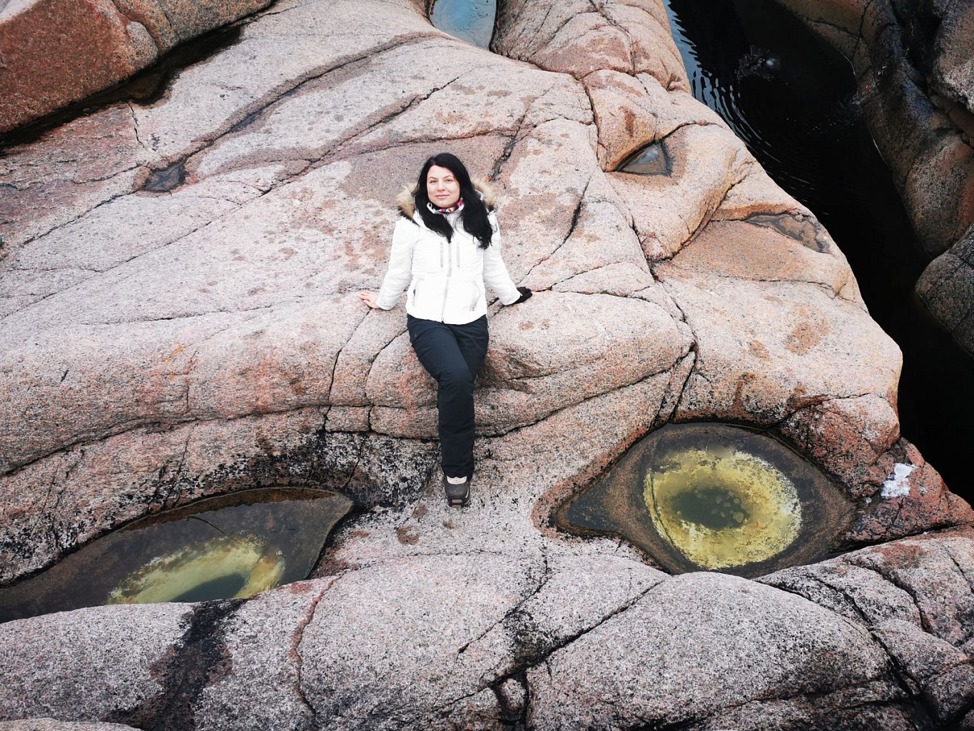 Со школьных лет и кабинета лечебной физической культуры у меня осталась любовь к спорту – обожаю горные лыжи. А еще меня восстанавливают какие-то творческие вещи и впечатления. Я пишу картины и не оставляю идею научиться играть на фортепиано, периодически беру уроки. Люблю нестандартные путешествия: побывать на краю страны, научиться ловить рыбу, например. Увидеть живого кита, косатку, поплавать с морскими котиками. Это все то же природное любопытство, наверное, какая-то неуспокоенность... Ныряла в Северном Ледовитом океане, пробовала прожить двое суток в лесу, поднималась на вулкан Мутновский на Камчатке – это было стрессово. Последнее путешествие у меня было совсем недавно, на Кольский полуостров, в бухту Титовка. Ездили с компанией, ныряли, добывали гребешков и морских ежей. Подтверждаю: нет ничего вкуснее, чем самостоятельно добытая еда! Там абсолютно дичайшие места, нет вообще ничего. Добираться долго, неудобно и последние 40 минут – на резиновой лодке. Но в правильное время там можно найти эталонные грибы, вкусные ягоды, потрясающие виды, свежий воздух и спокойствие.