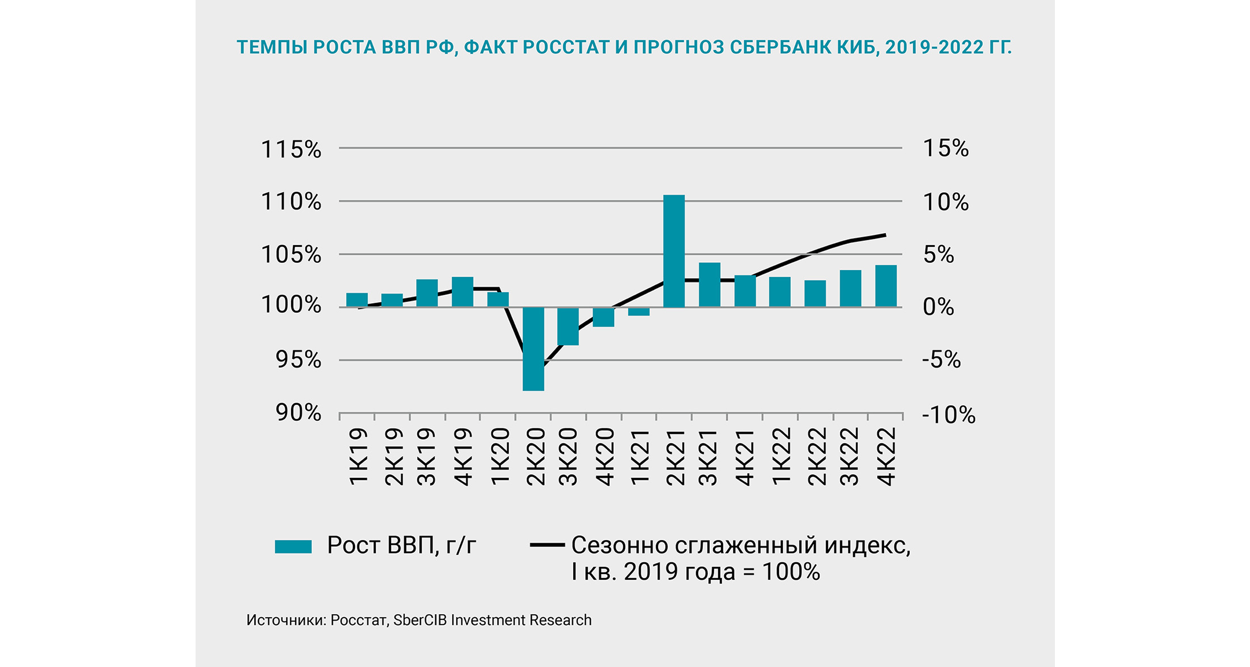 Экономика восстановилась до докризисных уровней и постепенно замедляется. Драйверы восстановления исчерпаны, ДКП (денежно-кредитная политика) ужесточается, периодически возвращаются карантинные ограничения. ВВП в III квартале 2021 года, по предварительной оценке, составил 104,3% относительно соответствующего периода 2020 года. Рост ВВП за III квартал с начала года – 4,6%. В следующем году ВВП РФ ожидает замедление до 2,5%. В дальнейшем возможно замедление темпов роста до 1,5–2%. Этому могут способствовать следующие факторы: демография (сокращение рабочей силы), недостаток иностранных инвестиций, структурные проблемы.