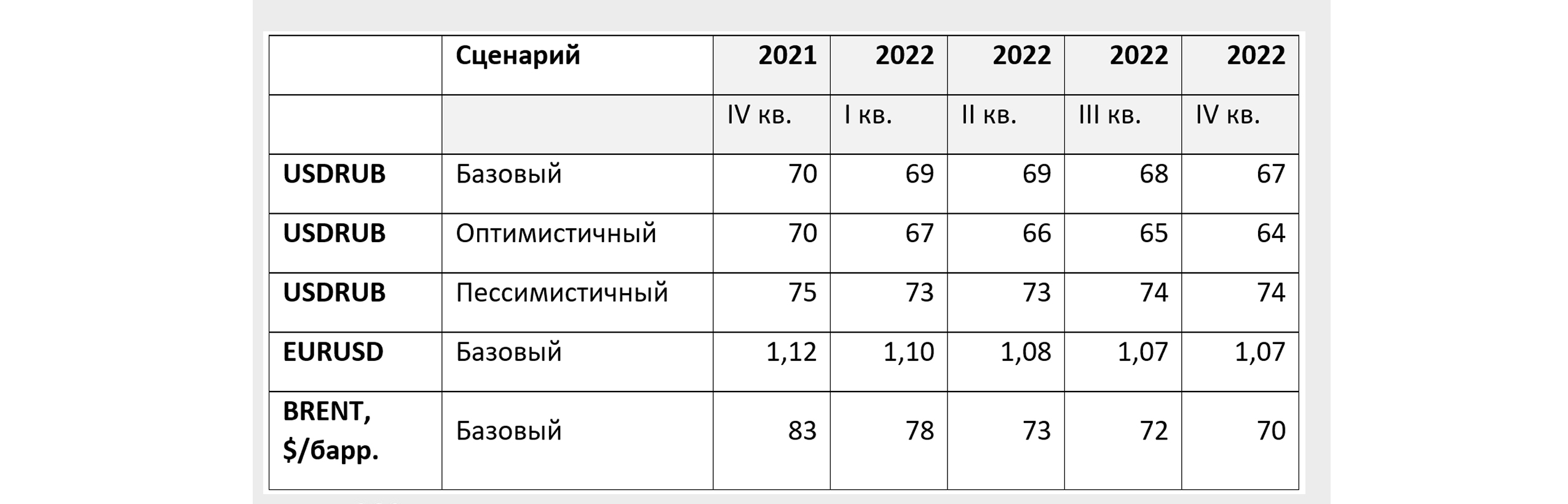 В базовом сценарии рубль будет умеренно укрепляться к доллару США, значительнее к евро. Цены на нефть будут оставаться высокими благодаря пролонгации сделки ОПЕК+ и низким запасам по итогу 2021 года.