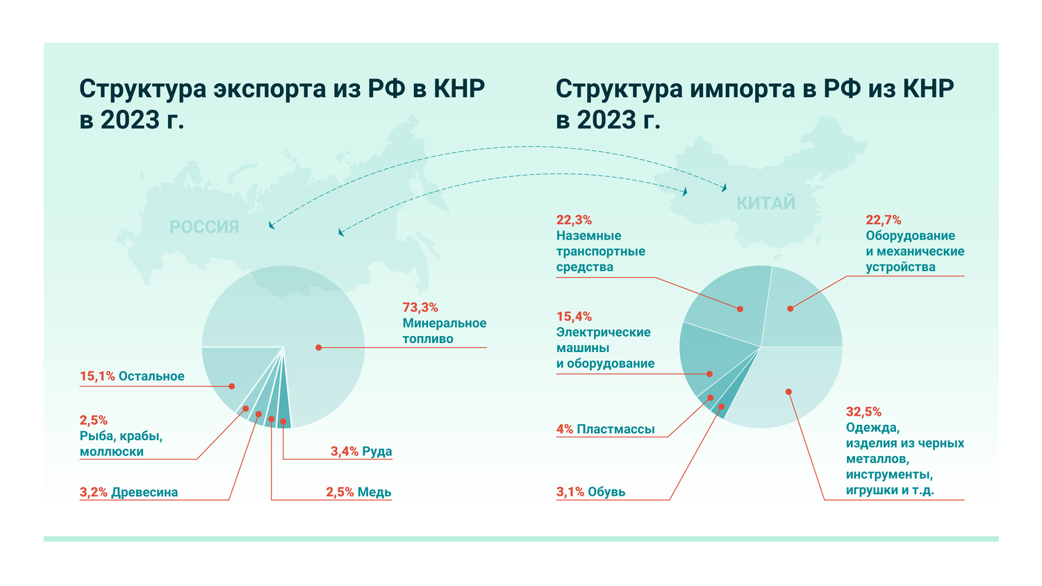Большую роль в расширении экономических связей играет стратегическое партнерство Москвы и Пекина и хорошие рабочие контакты лидеров государств. Комиссии по взаимодействию стран работают практически во всех сферах, начиная от ВПК и заканчивая охраной окружающей среды. Однако значение торгово-экономического сотрудничества для каждой стороны все же различается. Для России Китай давно стал партнером № 1, а возможность перенаправить экспорт с Запада в Китай обеспечила выживаемость многих бизнесов и целых отраслей. А для Китая, который с 2009 года имеет статус главного мирового экспортера, торговля с нашей страной имеет гораздо меньший приоритет. На долю России (даже с учетом ежегодного роста торговли) в среднем приходится всего 2–3% от внешнего товарооборота Поднебесной, а лидерство в торговле с Китаем прочно удерживают США и страны Евросоюза.