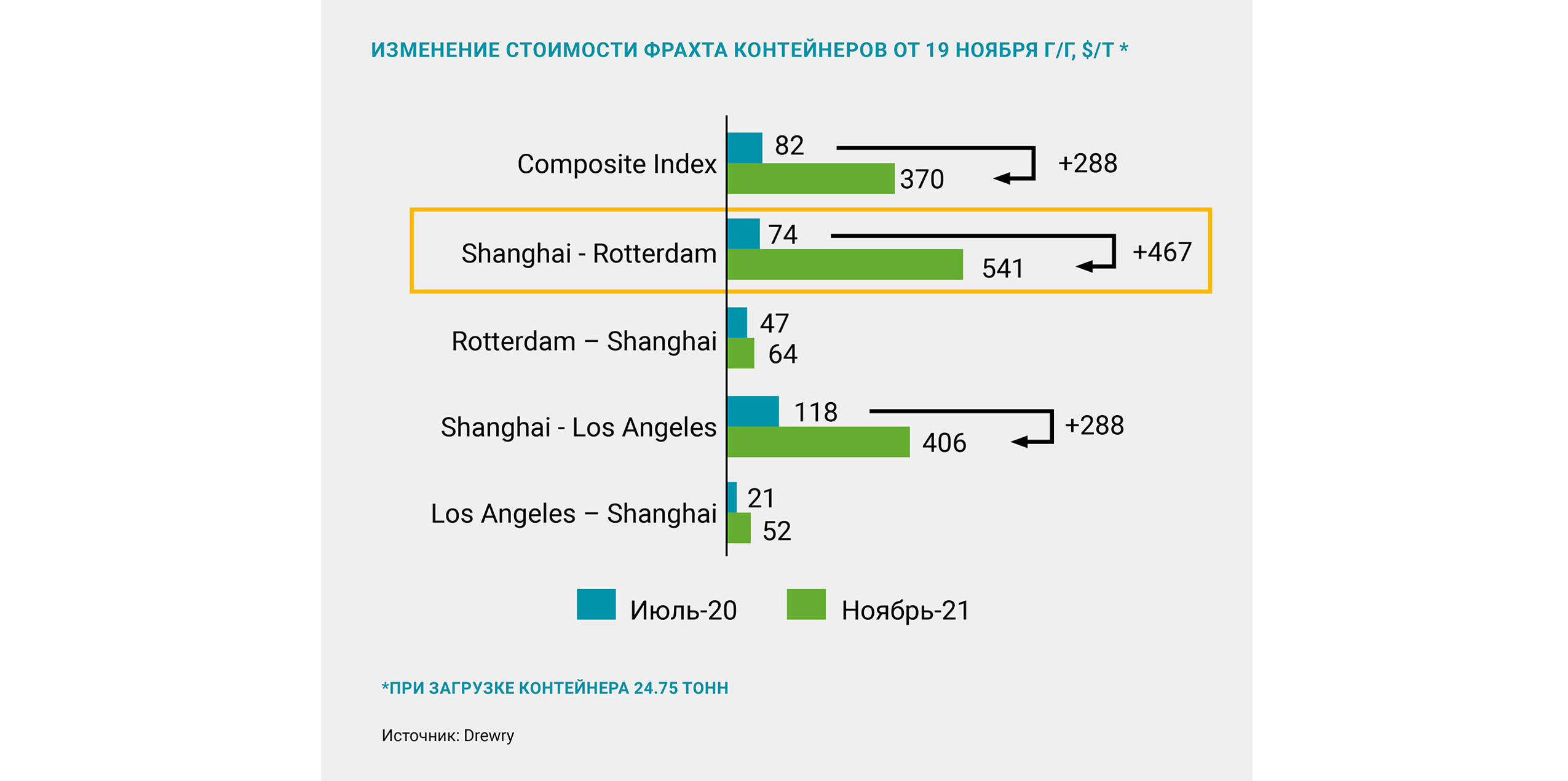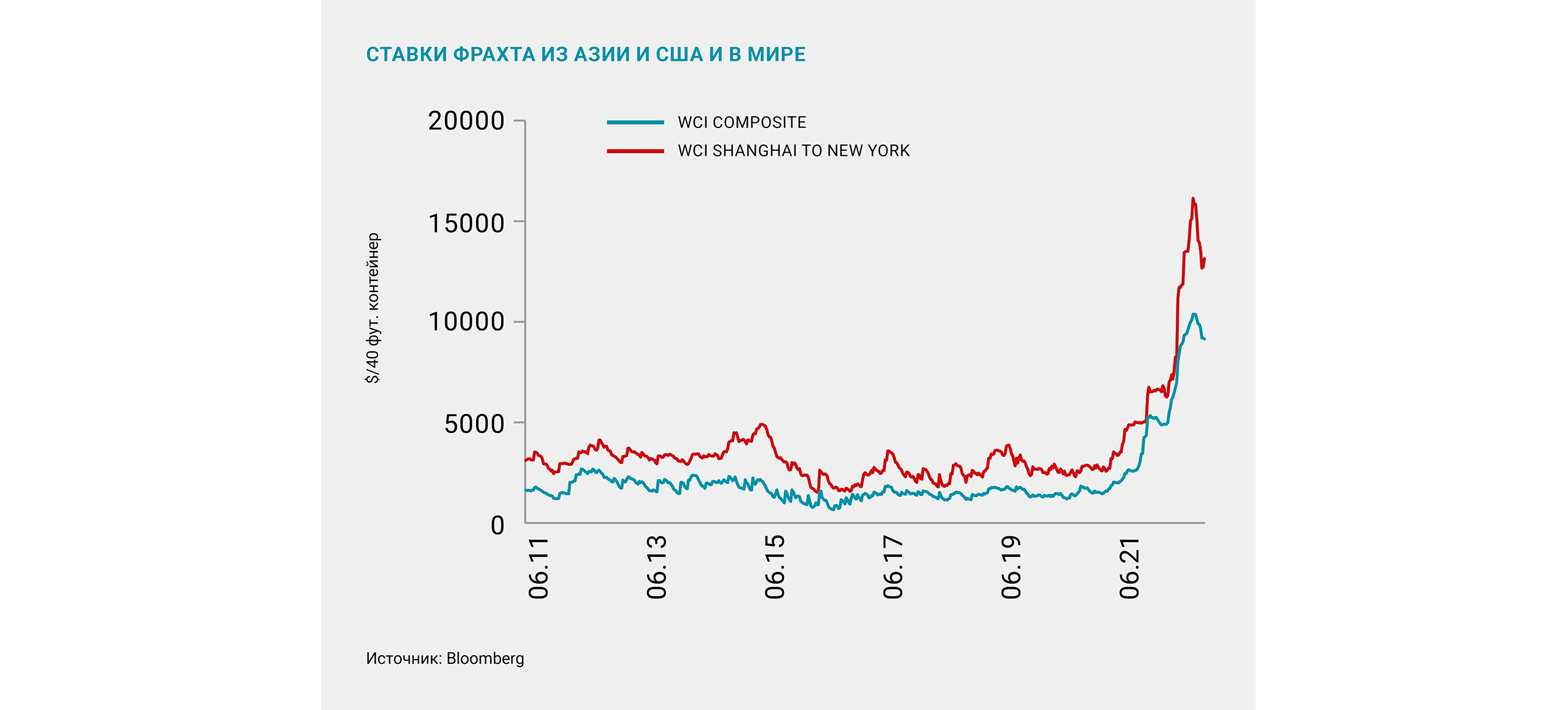 Дополнительный фактор, оказывающий давление на цены – сохранение высокой стоимости морских контейнерных перевозок. Это приводит к ограничению международной торговли и создает дополнительный дефицит товаров на рынке. Так, например, стоимость транспортировки из Китая в США росла до середины сентября и превысила 16 тыс. долл. за 40-футовый контейнер, после чего спотовые цены снизились до 13,1 тыс. долл. в середине ноября. По оценкам аналитиков, ситуация останется напряженной в течение 2022 года и постепенно разрешится к началу 2023 года ввиду строительства новых судов и контейнеров. Дополнительным фактором падения стоимости логистики может стать потенциальное сокращение спроса на конечные товары из-за высокой инфляции.