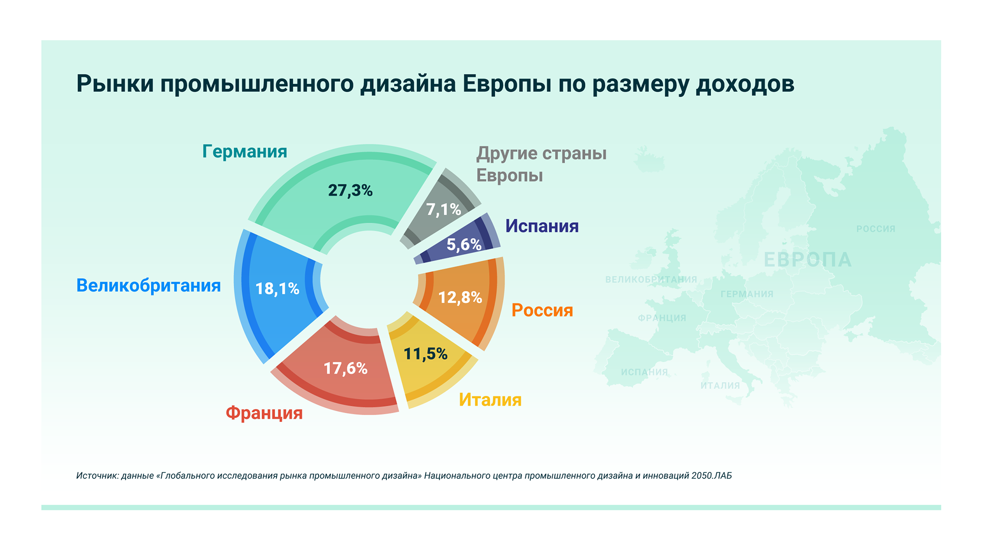 По данным опроса Российского союза промышленников и предпринимателей, 65% руководителей российских предприятий с выручкой свыше 10 млрд рублей рассматривают промышленный дизайн как конкурентное преимущество, позволяющее достигать бо́льших бизнес-результатов. Однако инвестиции в это направление осуществляют только 20% респондентов. В то же время типичные производственные компании во всех развитых странах вкладывают в развитие дизайна около 5–7% основной выручки, так как это повышает добавленную стоимость и выделяет товар на полке.
