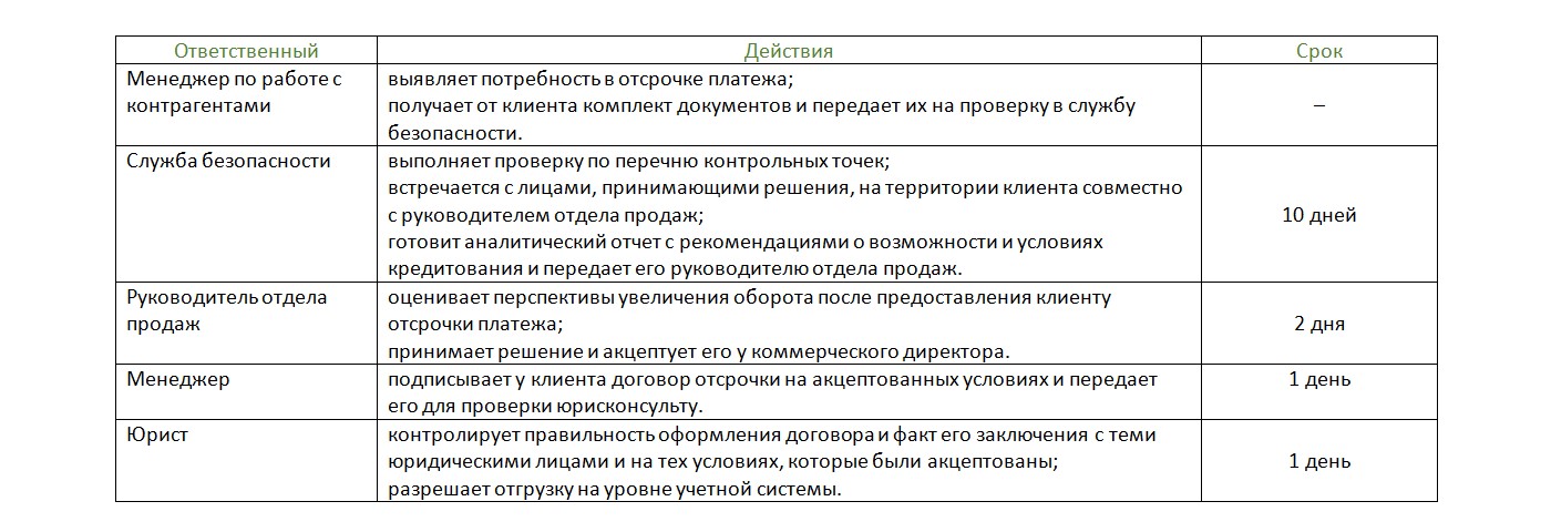 3. Формализация процесса оплат. Все платежи должны проходить по времени и в соответствии с правилами, описанными в регламенте.