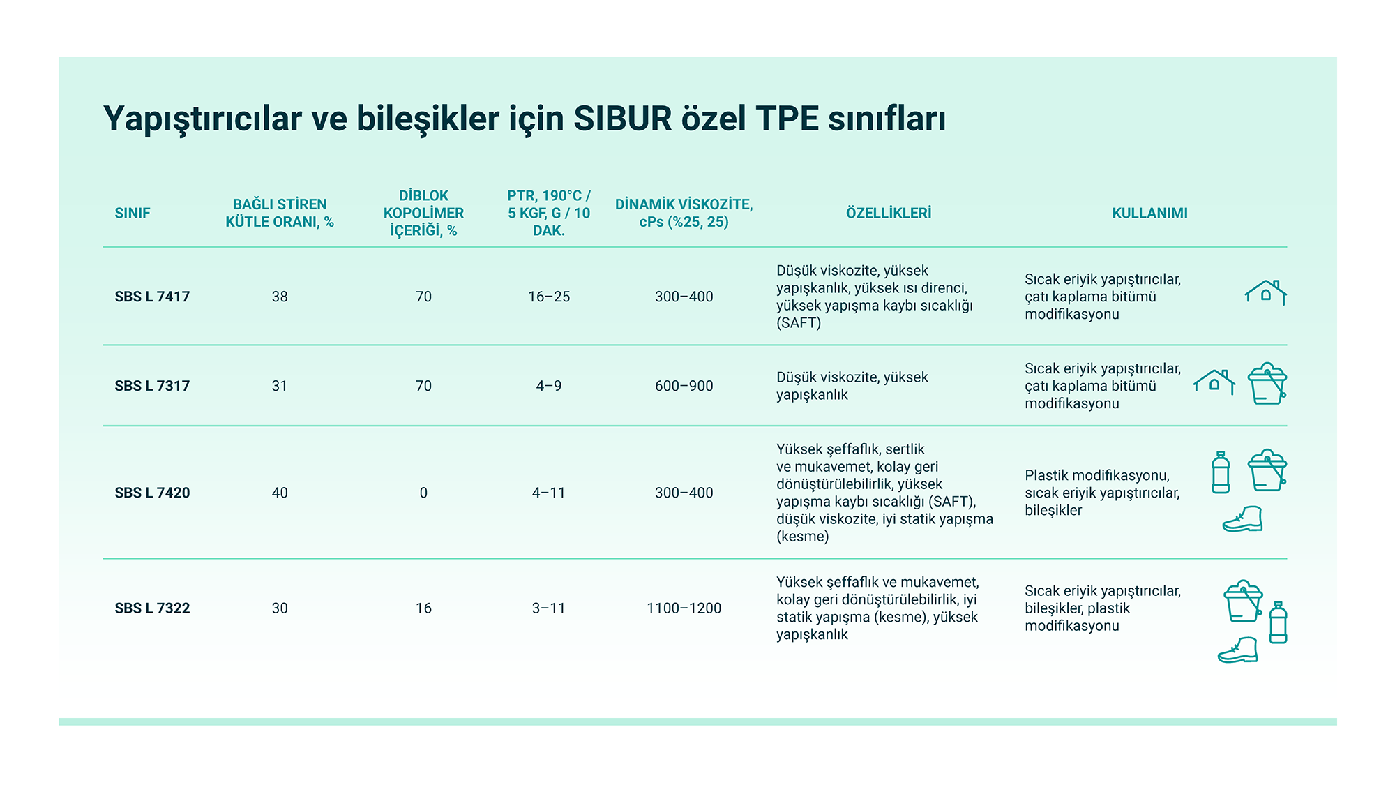 Yapıştırıcılarda kullanılacak SIBUR TPE'leri