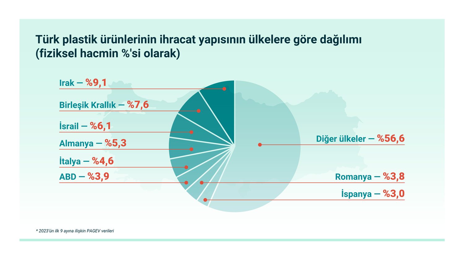 Plastik Sanayicileri Derneği (PAGEV) verilerine göre, Türkiye'nin mamul plastik ürün ithalatı 9 ayda geçen yılın aynı dönemine kıyasla miktar bazında %8,4, değer bazında ise %9,6 artarak 3,2 milyar dolar değerinde 581.000 ton olarak gerçekleşti. 2023'ün 3. çeyreğinde Türk tüketiciler için ithal plastik ürünlerin ortalama fiyatı kg başına 5,46 dolar oldu.
