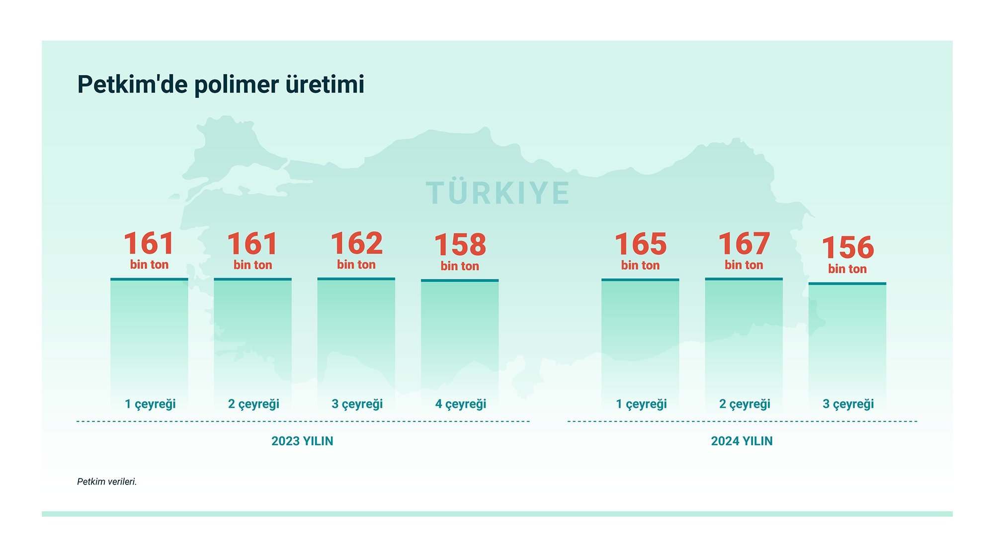 Türkiye'nin 1 numaralı petrokimya üreticisi Petkim, 3. çeyrekte Türk lirasındaki yeniden değerlenmenin ve yüksek enflasyon baskılarının devam eden operasyonları olumsuz etkilediğini tahmin ediyor. Petkim ayrıca zayıf talep ve arz fazlasını, jeopolitik gerilimleri ve istikrarsız enerji fiyatlarını Türkiye polimer pazarını etkileyen temel faktörler olarak gösterdi. Aynı zamanda Petkim, 2024 yılının dokuz aylık döneminde 488 bin ton polimer hammaddesi üreterek geçen yıla göre %0,8'e kadar artış gösterdi.